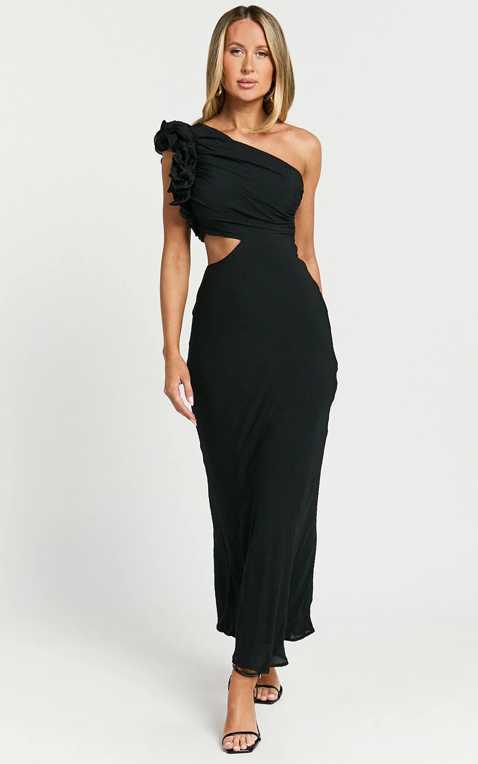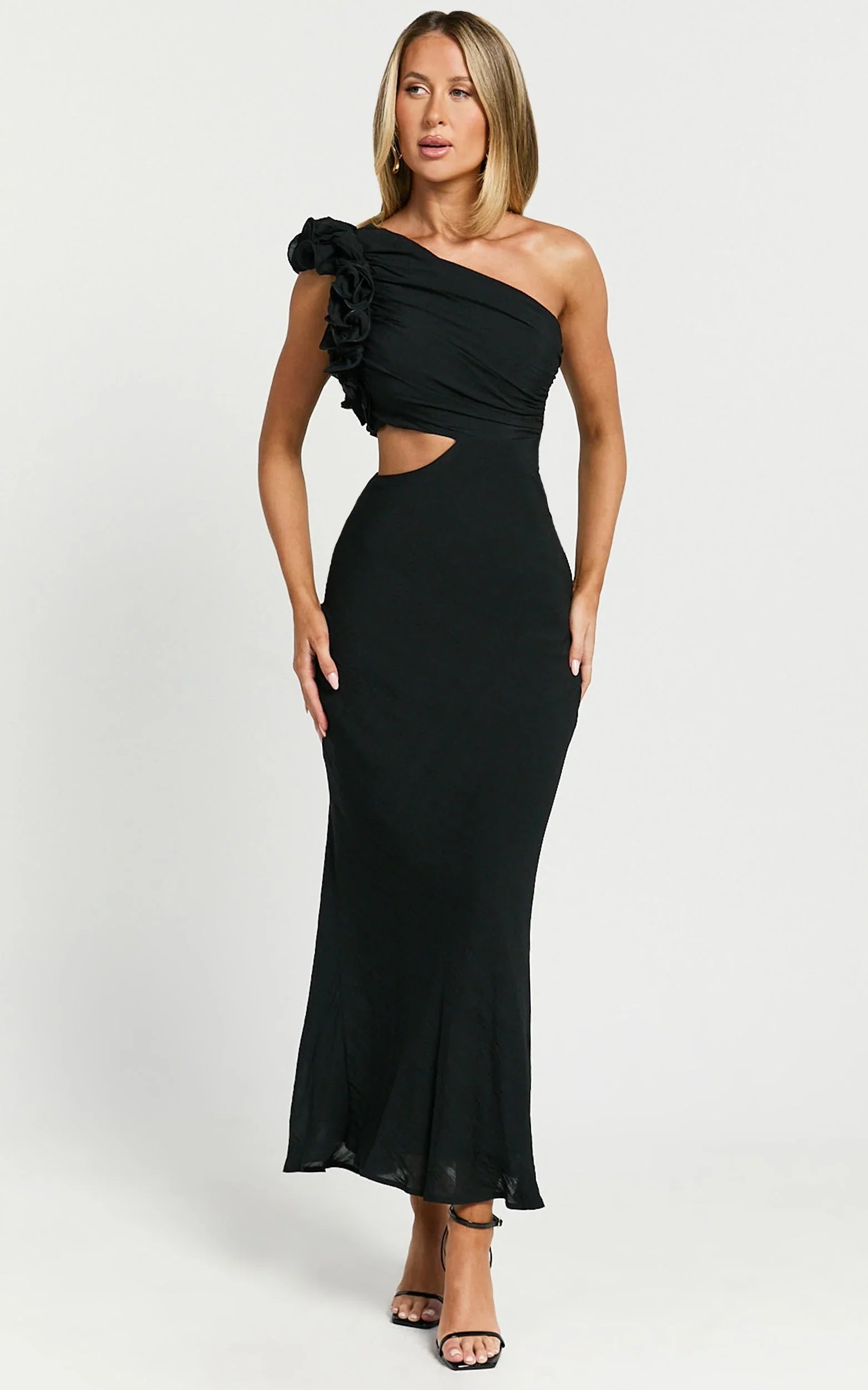 Make a statement in the Anessa Midi Dress, a stunning piece that redefines elegance with a modern twist. This one-shoulder ruffle detail dress isn't just any addition to your wardrobe; it's a declaration of your unique style and confidence. Crafted for the woman who loves to stand out, the Anessa Midi Dress is more than just an outfit; it's a vibe.