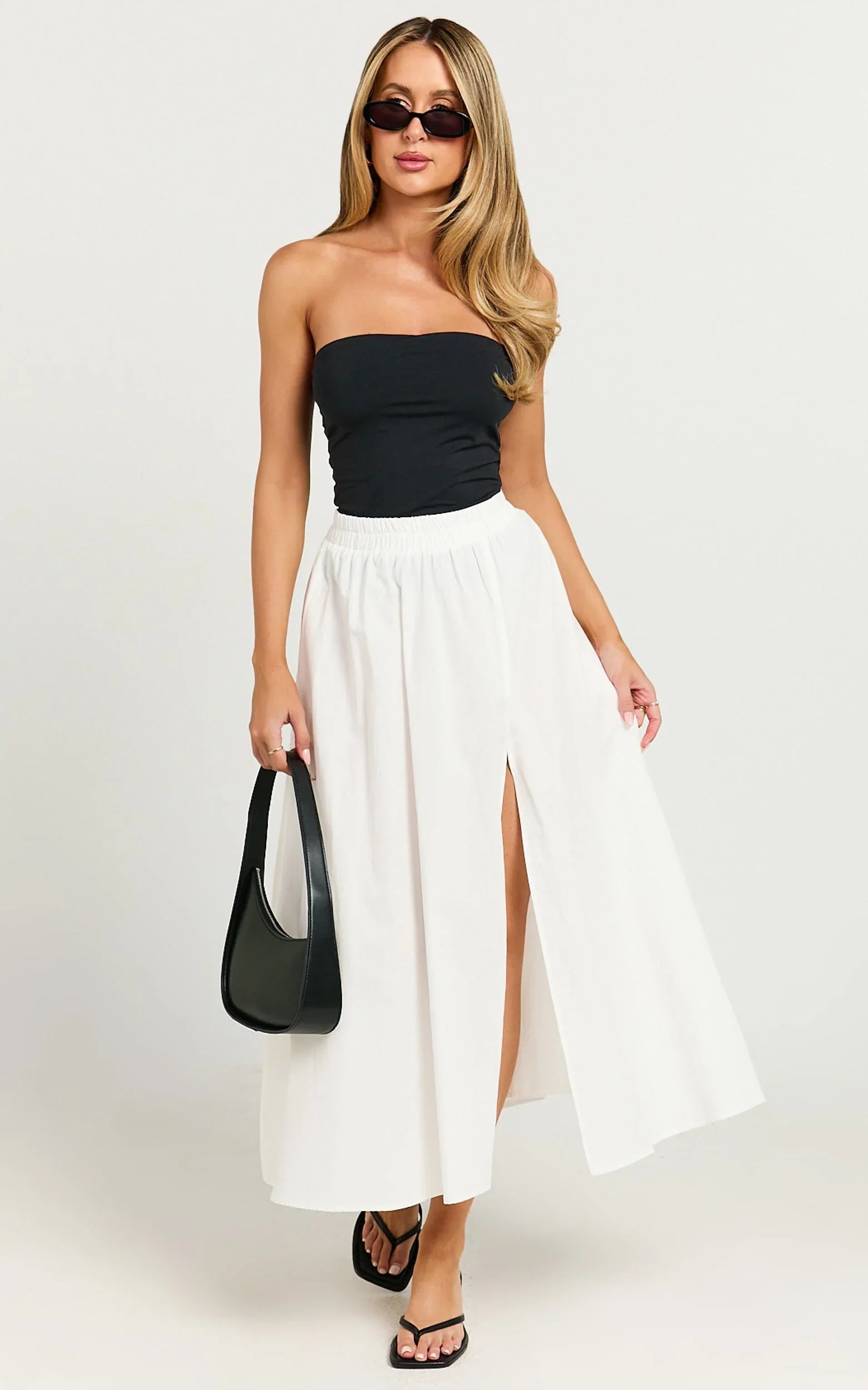 'Say hello to your new go-to skirt! The Annika A Line Midi Skirt in Ivory is the perfect addition to your wardrobe for those casual spring days. Made from comfortable and breathable cotton, this A-line skirt flatters any body type with its versatile midi length.