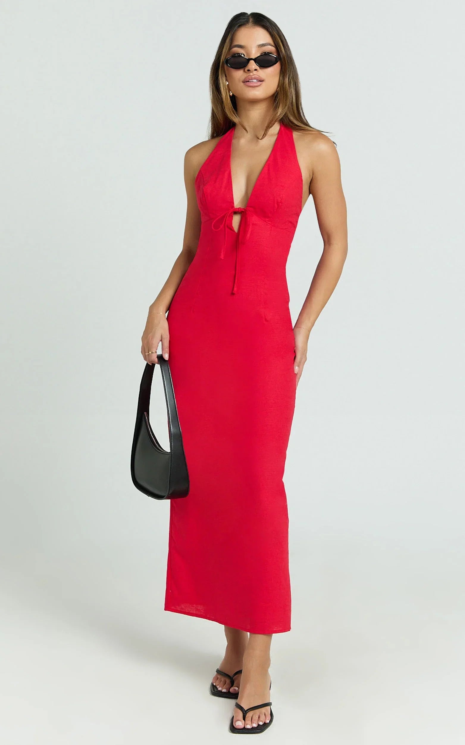 This strappy V-neck midi nails that under-bust gathered tie front for a lifted, flattering shape, while the bias slip skirt skims and swishes with every step. A true Dresses standout with that Quiet luxury feel, it’s equal parts sultry and polished, your go-to for date nights, weddings and everything in between.