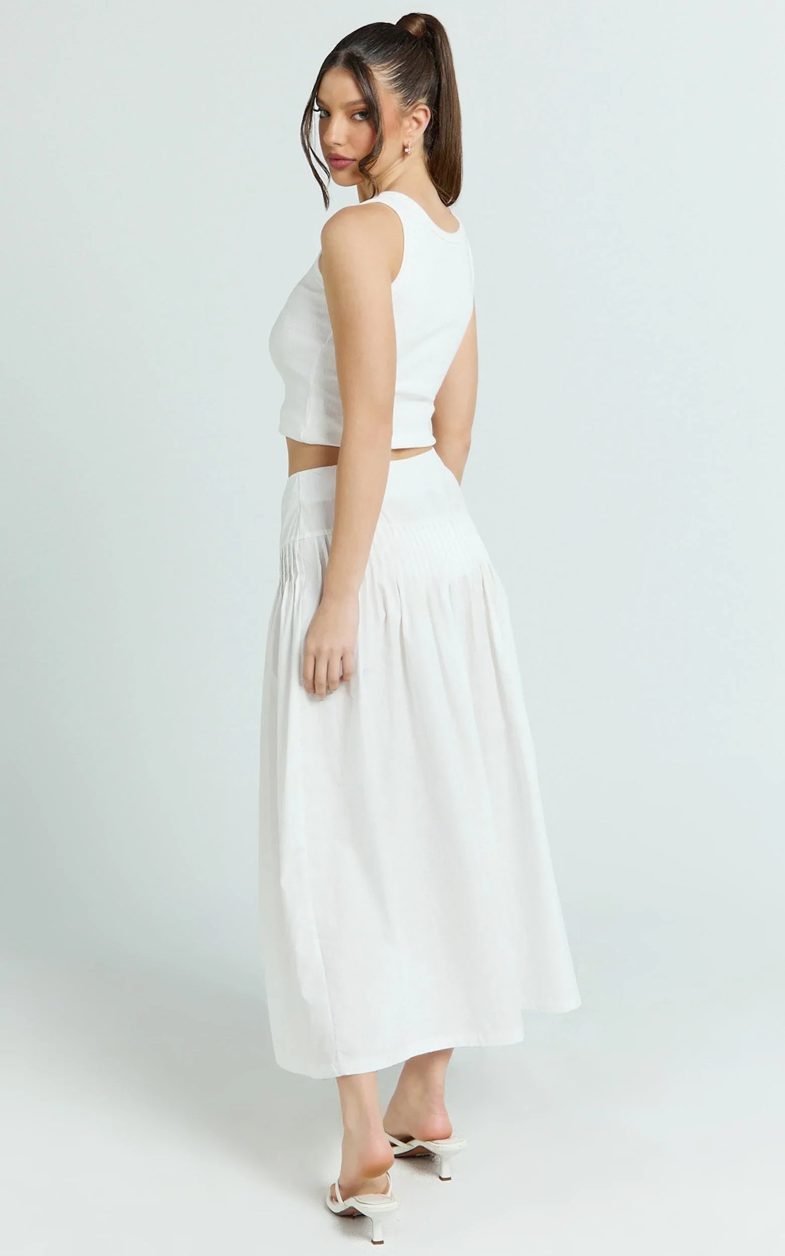 The A-line silhouette and pintuck detailing create that swishy, elongating flow you love, while the high-rise fit flatters and pairs back seamlessly with your favourite Skirts staples for Minimalism done right.