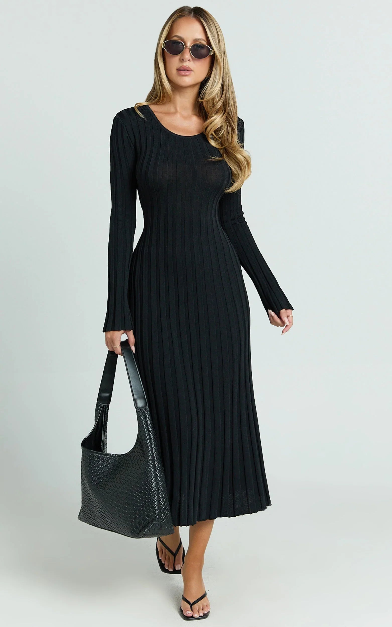 The Blaire Midi Dress in Black is your throw-on, feel-amazing knit that blends ease with polish. With a scoop neckline, long sleeves, and an A-line flare, it drapes beautifully in soft viscose that feels comfy from day to night. The tie-back detail adds a subtle, feminine twist, while the classic black hue makes styling effortless, perfect for lunch dates, office days, or evening plans. Wear it with sleek ankle boots for a chic autumn vibe, or swap in ballet flats and a shoulder bag for something softer. Comfortable, flattering, and endlessly wearable, Blaire is the knit dress you’ll keep in rotation all season.