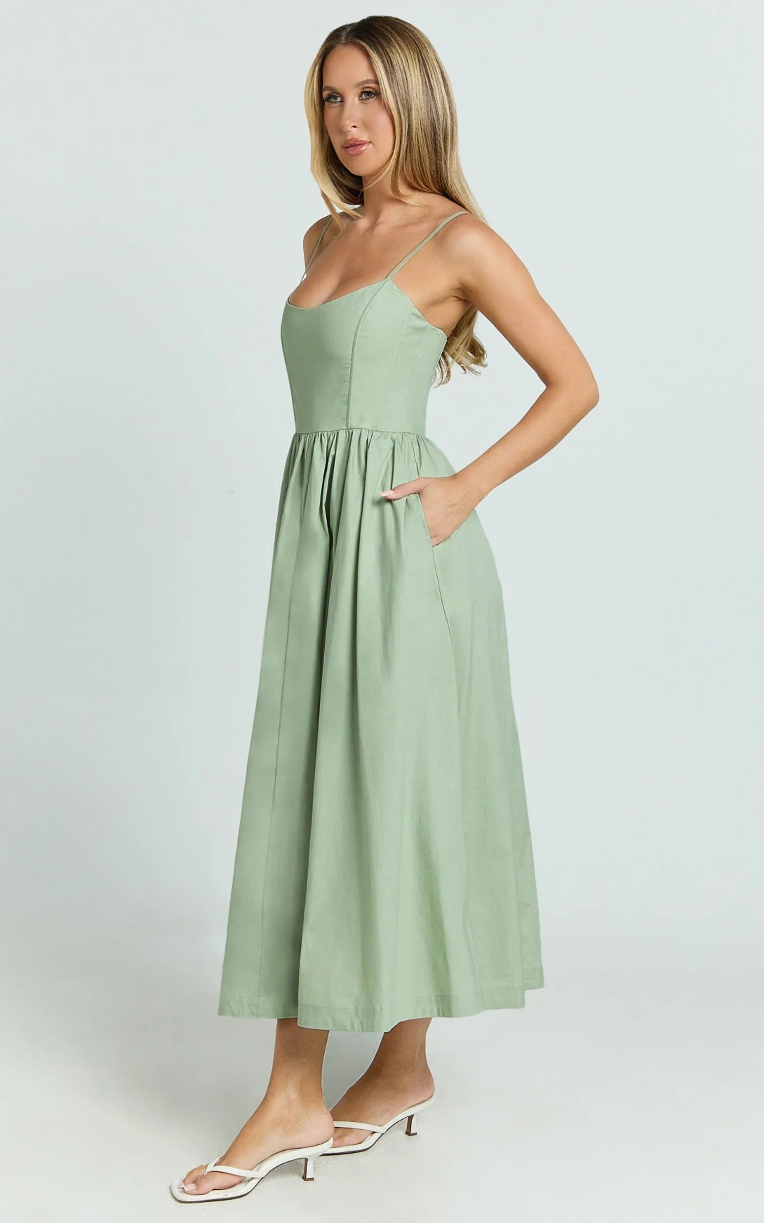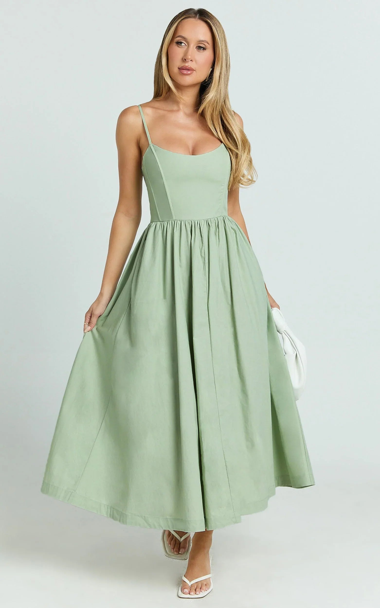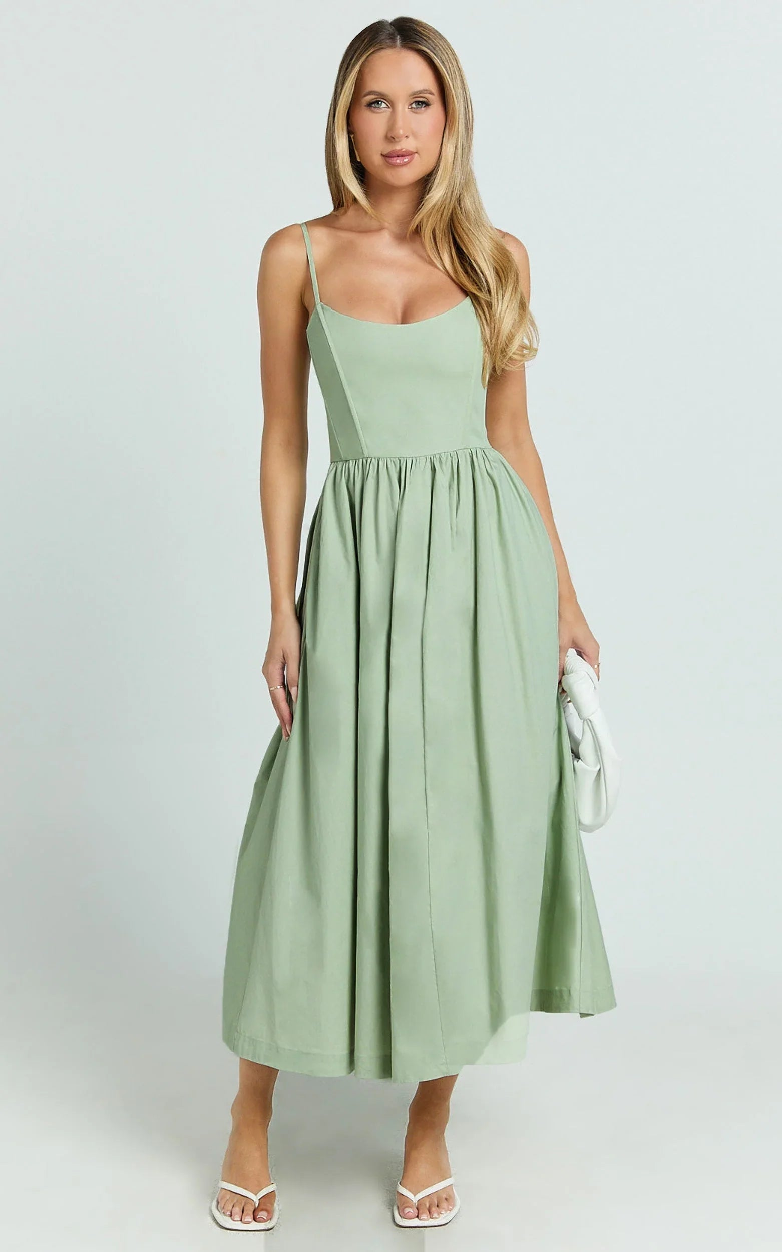 This scoop-neck flare midi brings easy polish with a swishy skirt that moves when you do and a fitted bodice that flatters from brunch to dance floor. Soft green tones tap into the Dresses trend cycle while the silhouette nails that clean-girl vibe, giving you a go-to piece that’s equal parts cute and effortless.