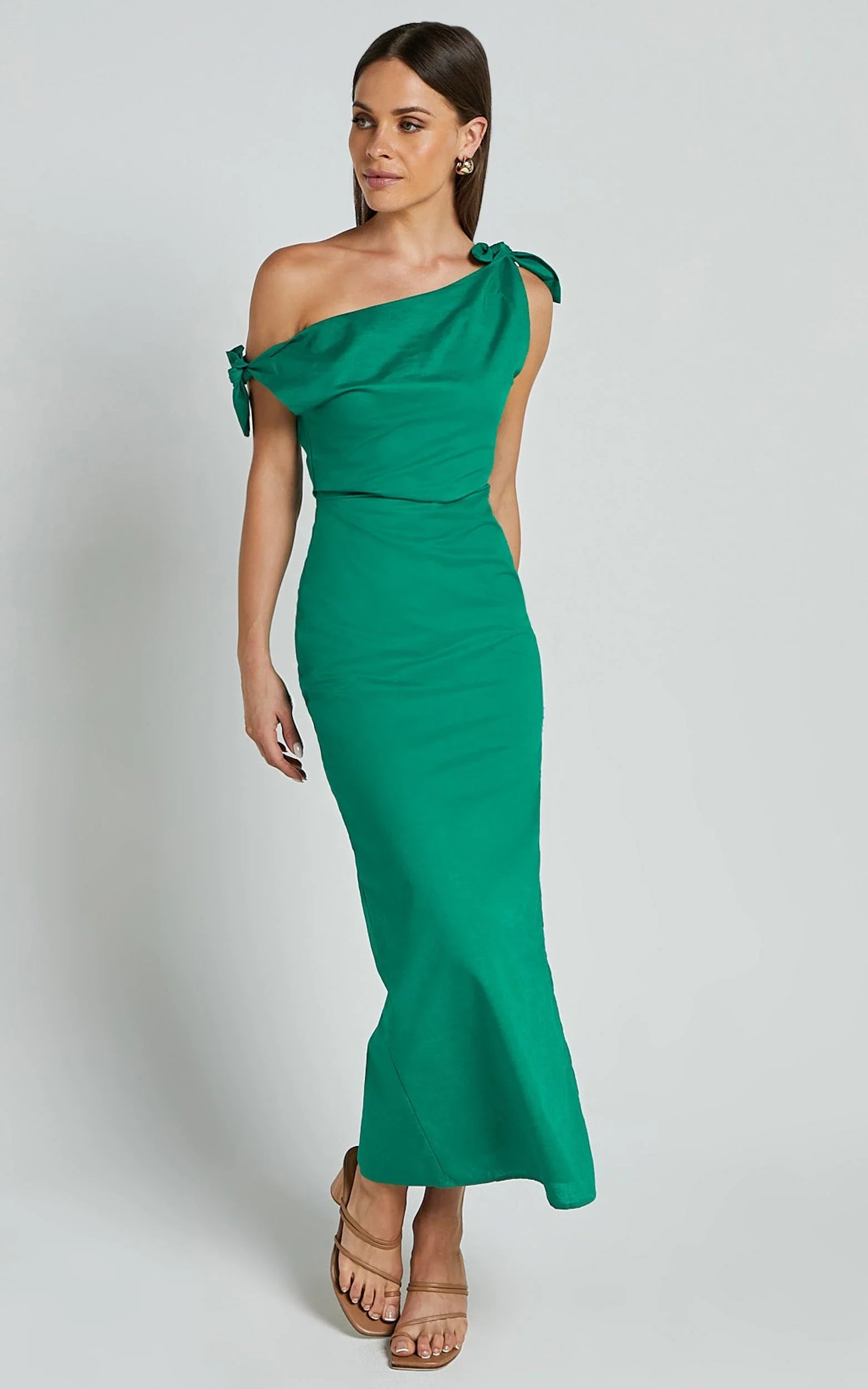 Show off your effortlessly chic style in the Cincinnati Midi Dress. This stunning off-the-shoulder dress features a side split and is made from a comfortable linen fabric, perfect for those warm summer days. The green color adds a pop of freshness to any outfit, while the fit and flare silhouette flatters all body types. Whether you're heading to brunch or enjoying a day out with friends, this sleeveless midi dress is the perfect choice for an easy and stylish look. Embrace your individuality and feel empowered in this casual yet trendy one shoulder dress from Showpo.