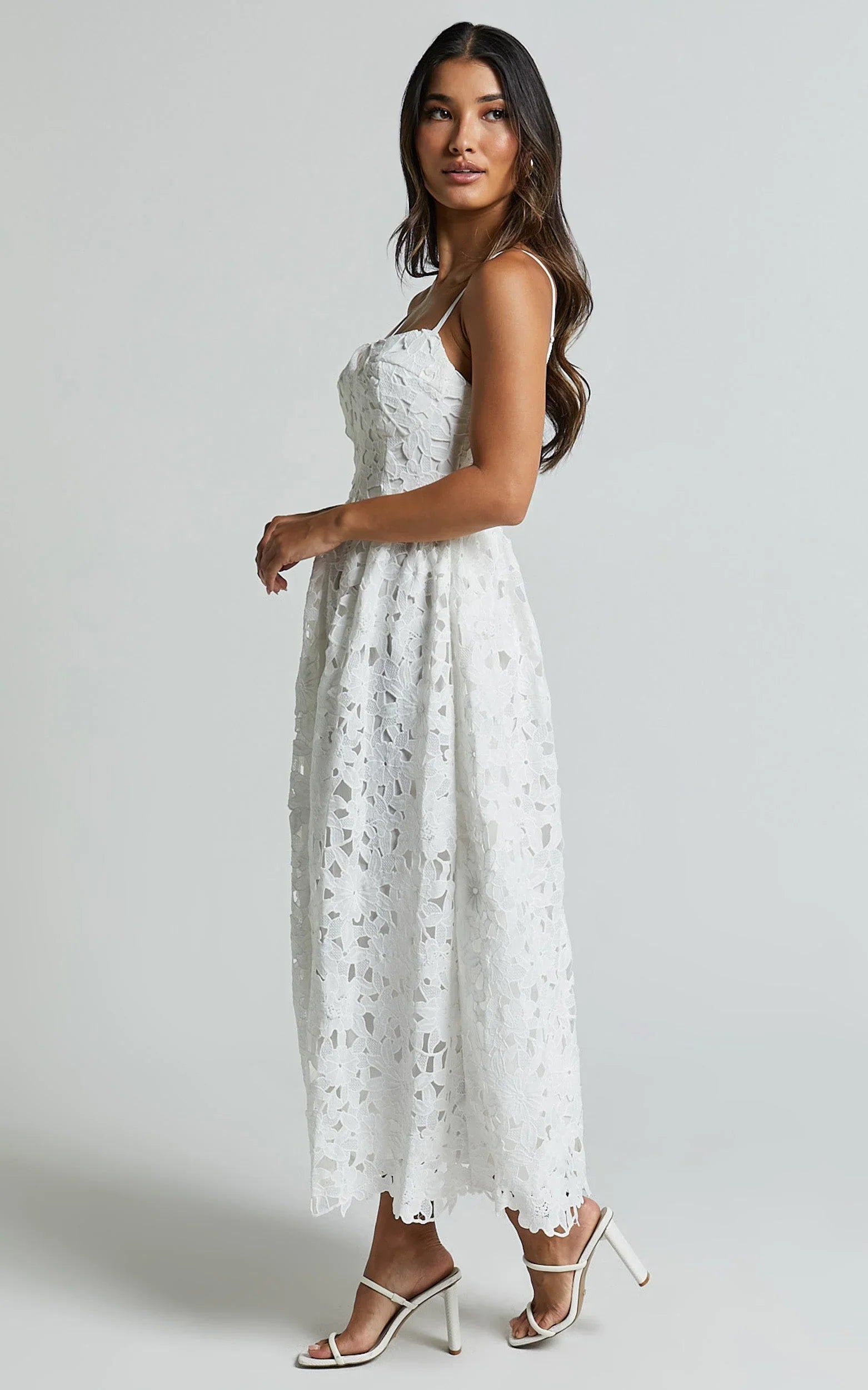 Get ready to turn heads in the Deborah Midi Dress! This stunning white dress features a strappy sweetheart neckline and corset lace details that add a touch of femininity to your look. Made from high-quality polyester, this fit and flare dress is both comfortable and flattering. Perfect for any party day or night, this sleeveless midi dress will make you feel confident and empowered. Whether you're hitting the dance floor or attending a special event, the Deborah Midi Dress will ensure all eyes are on you.