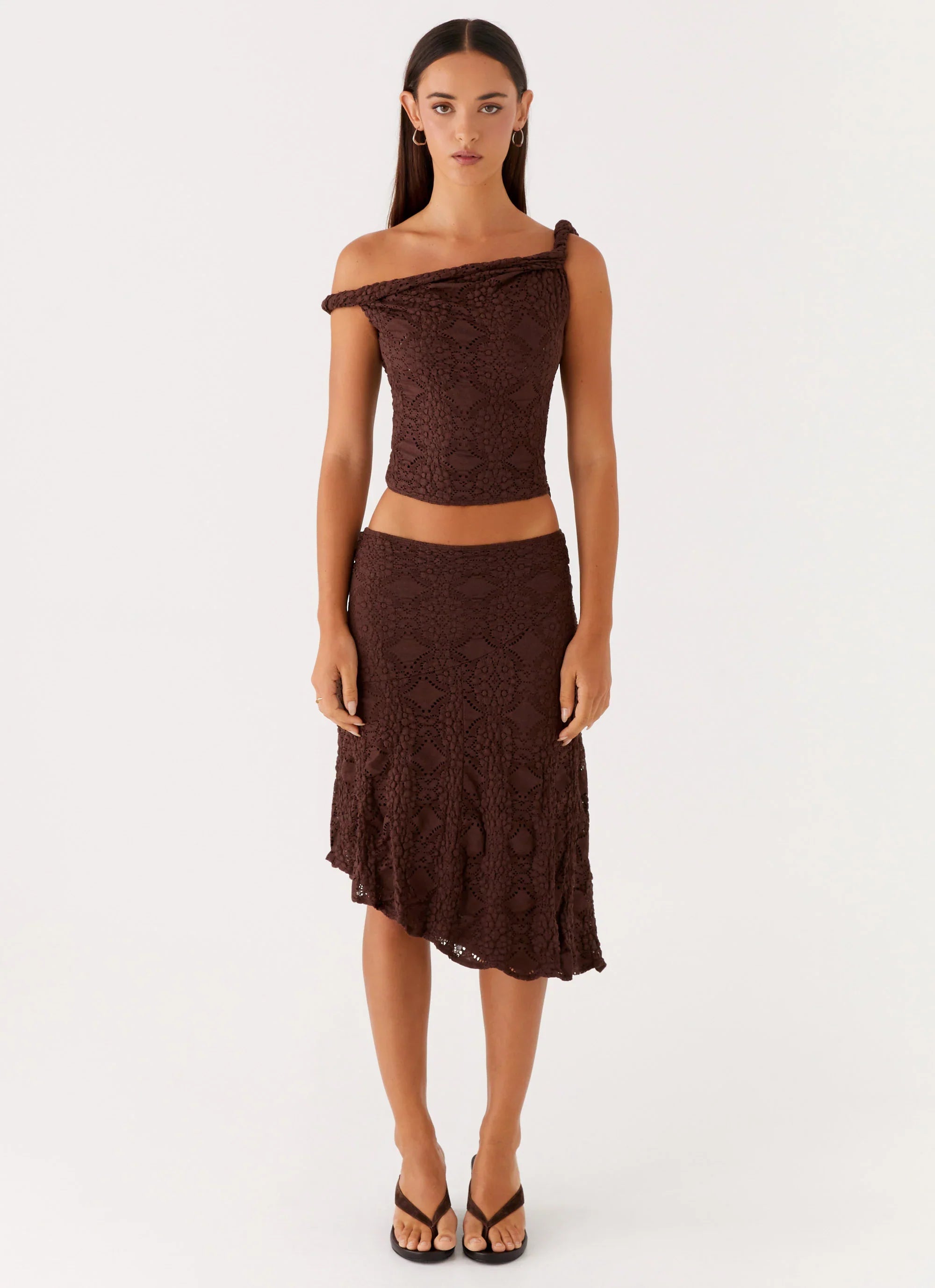 Embrace the night in the Diamond Sky Top. With its off-shoulder neckline and textured fabric, this top adds a touch of luxe to your evening. Lined for comfort and style, it's made to shine as you move through golden hour and beyond.