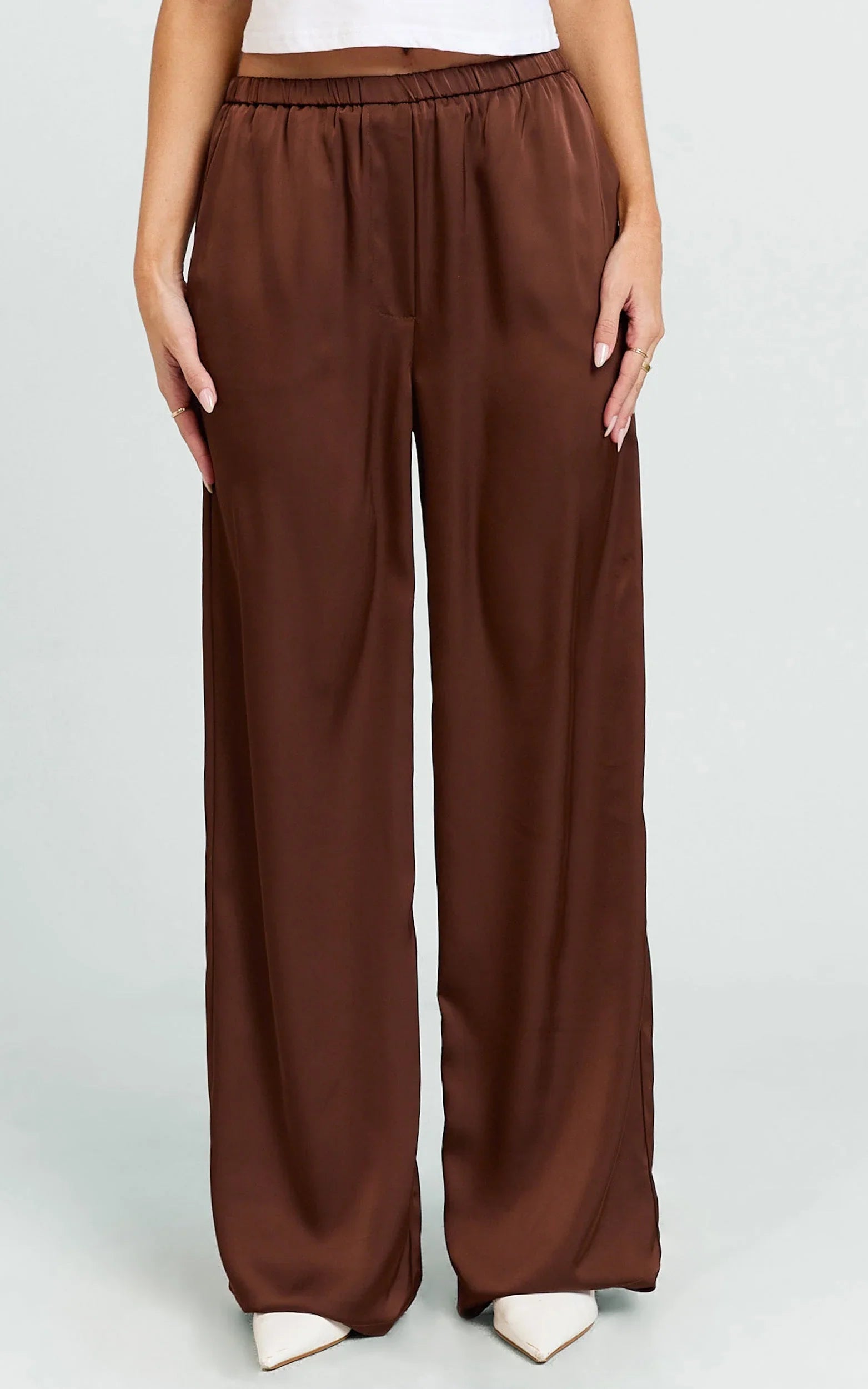 Cut with a sleek low-rise and straight leg, they streamline your silhouette and serve effortless polish in rich chocolate. Style them with a fitted top and finish with thong sandals for a chic warm-weather vibe, or lean into bowcore energy with a sweet cami and subtle hair ribbon, either way, they’re the definition of quietly luxe.