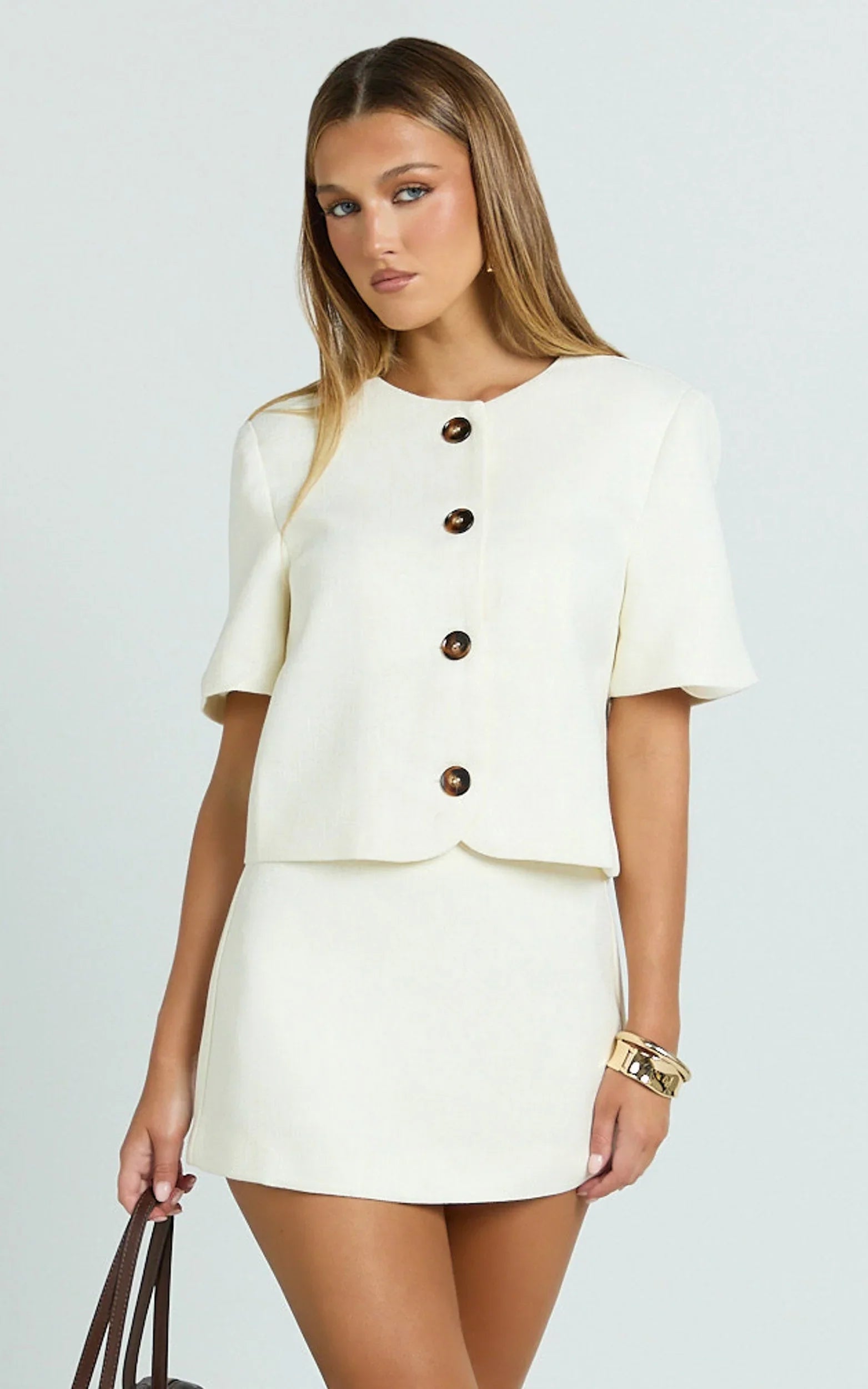The Halsey Mini Skirt nails that refined minimal aesthetic while keeping things playful. Its crisp shape balances well with oversized sunglasses or a sleek pair of thong sandals, making it a versatile hero for brunch to bar. Consider it your neutral base that elevates every outfit, from pared-back tees to statement tops, always polished, always on trend.