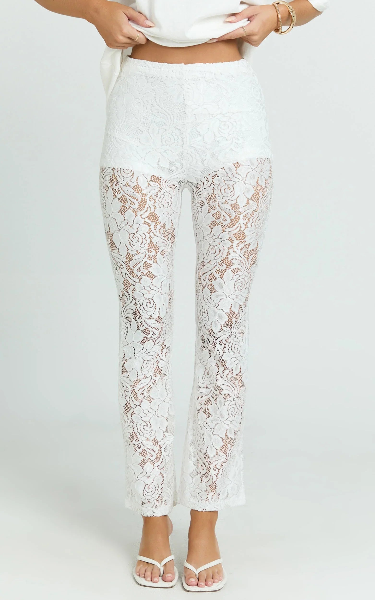 Make a statement in the Jaclyn Pants - your new go-to for turning heads and standing out in any crowd. Perfect for the fearless woman who loves to party as much as she values comfort, these Mid Waist Lace Straight Leg Pants in chic White are more than just a piece of clothing; they're an embodiment of confidence and style.