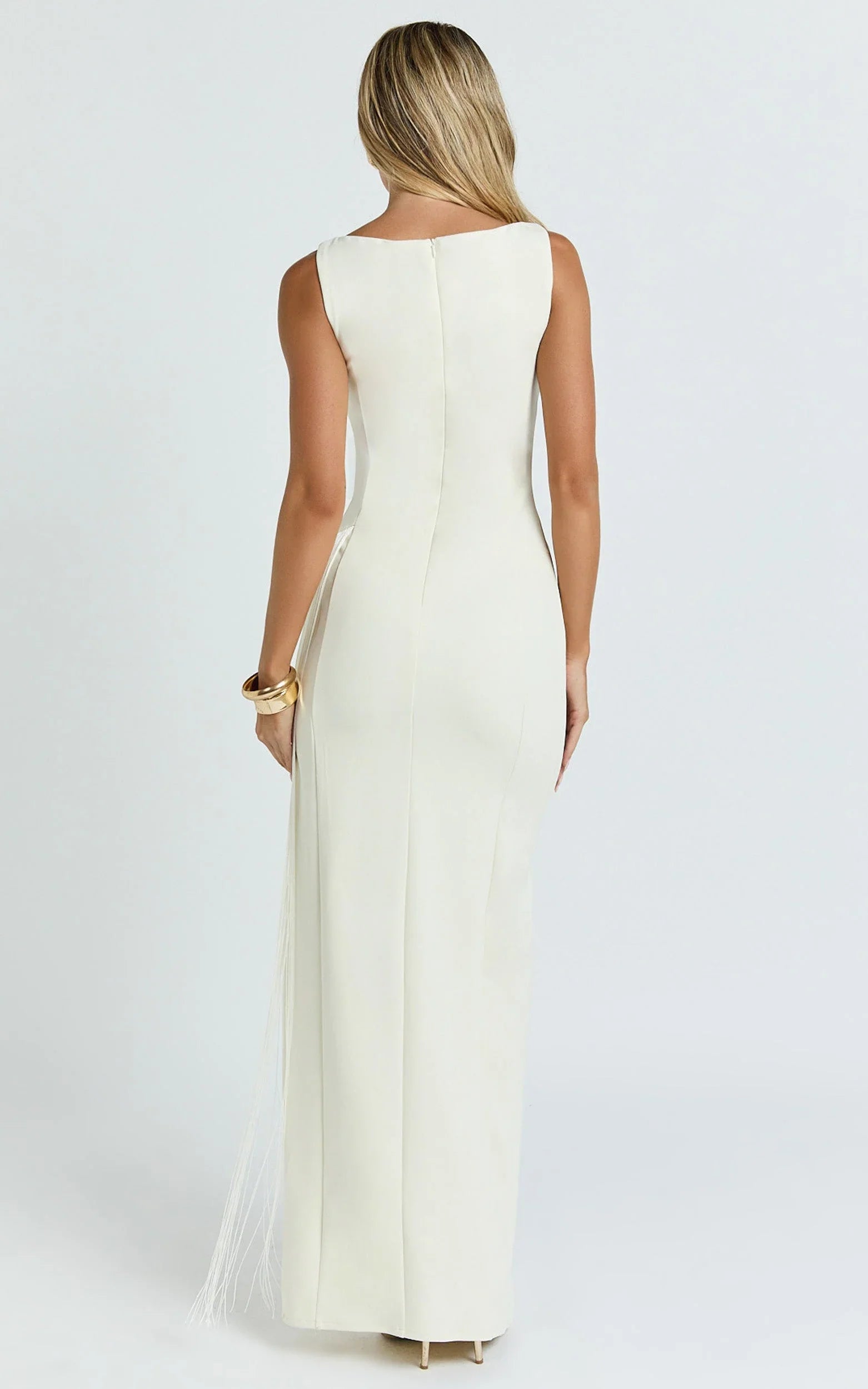 Joanne Maxi Dress - Scoop Neck Fringe Dress In Ivory makes styling a breeze, lean into the vibe with pendant necklaces for a refined sparkle, or toughen it up with cowboy boots for an unexpected twist. From elevated DRESSES moments to dance-floor plans, this one’s your go-to statement.