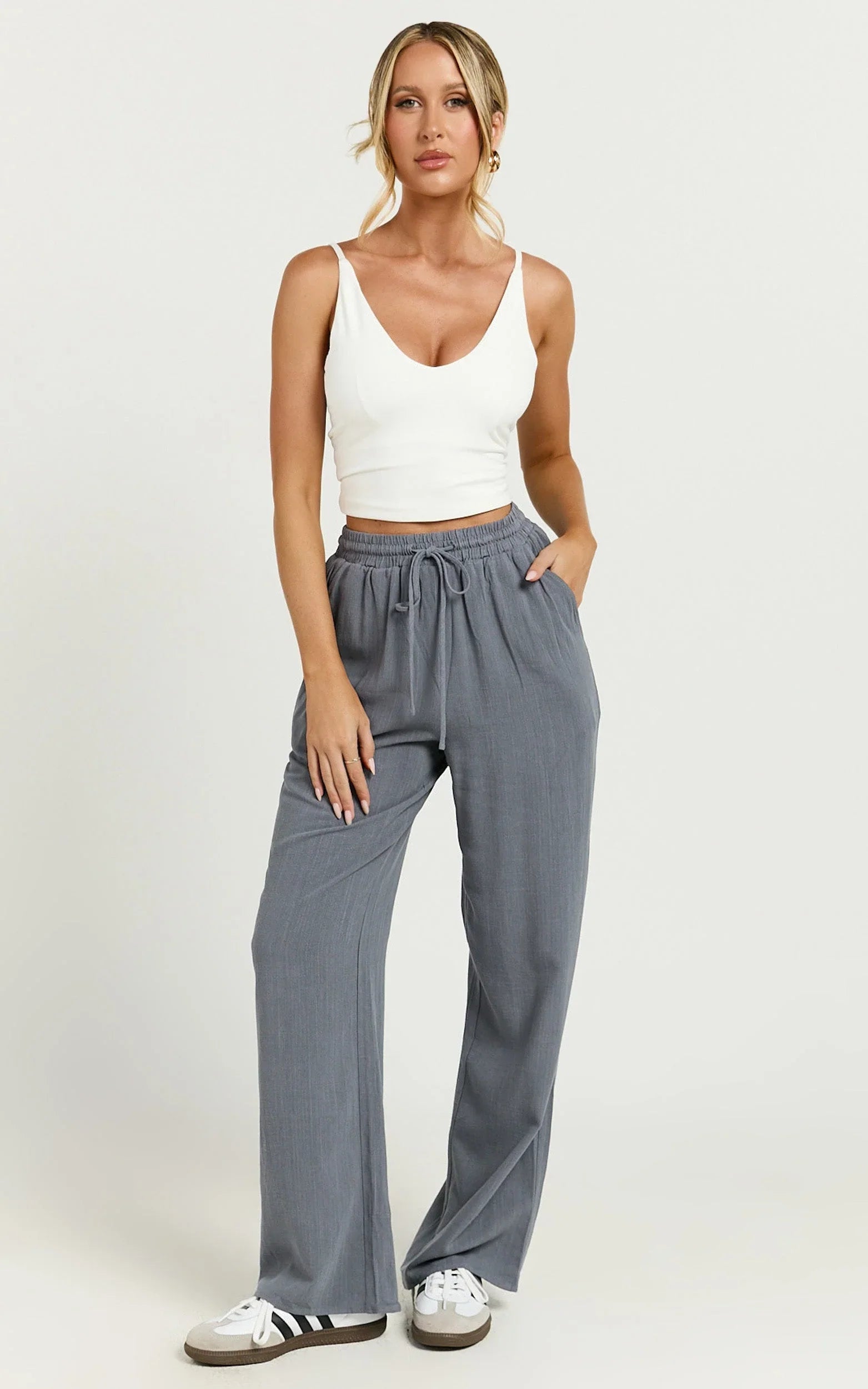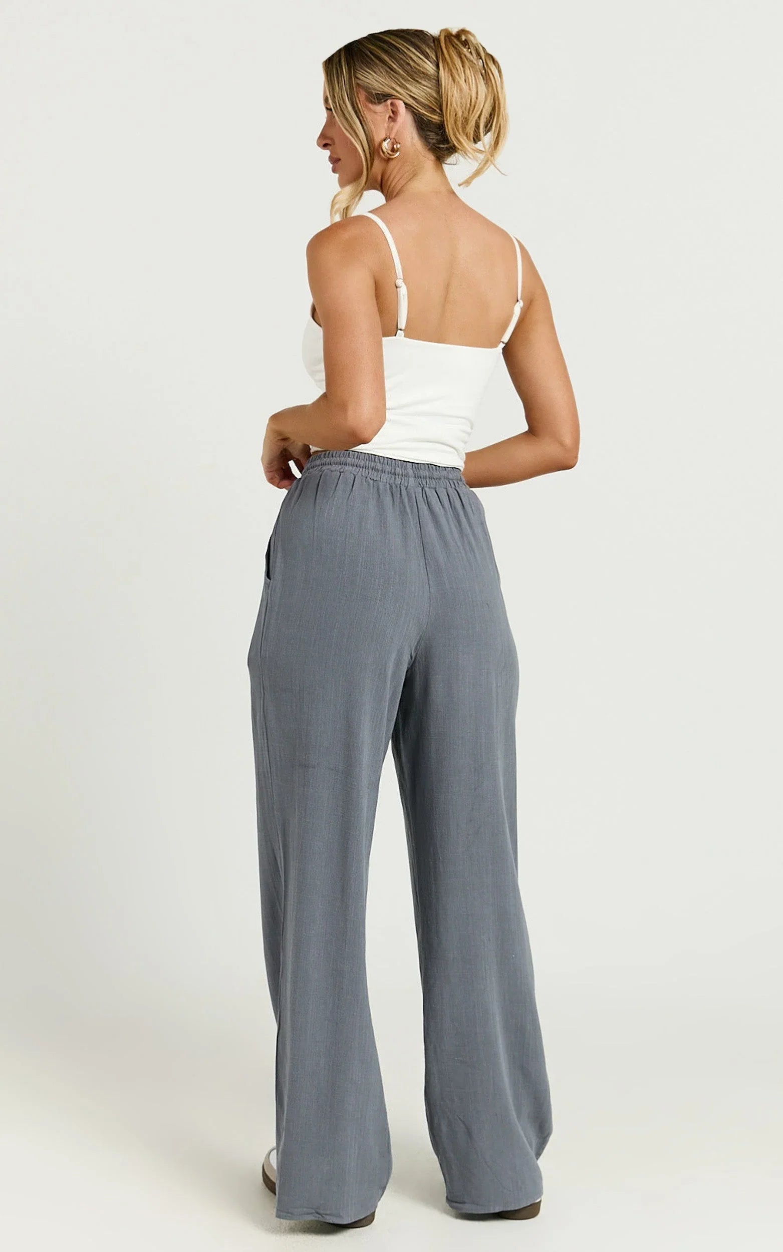 Unleash the ultimate blend of comfort and chic style with our Kala Pants – your new go-to for every vibe, be it a casual hangout or the life of a party. Crafted in a soothing charcoal grey, these mid-waisted, relaxed pants boast an elastic waist for the ultimate ease of wear. With their versatile wide leg that gently tapers, they're a breath of fresh air in your wardrobe, offering both freedom and a flattering silhouette.