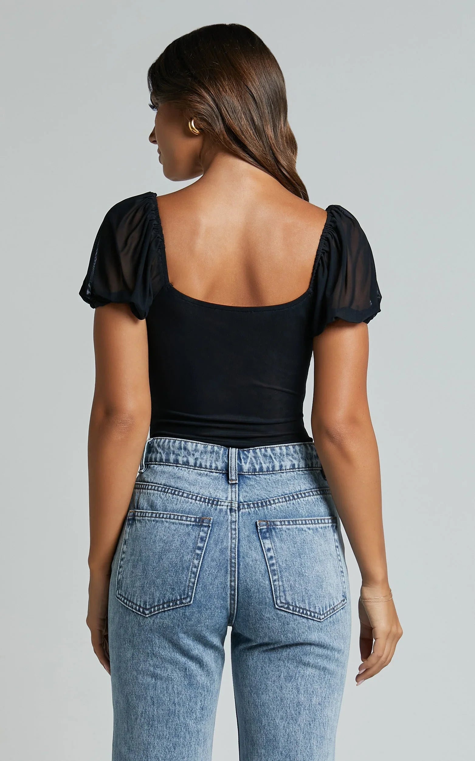 Stand out from the crowd in our Lara Bodysuit - Lace Detail Sweetheart Short Sleeve Bodysuit in Black. This stunning piece features a flattering sweetheart neckline and delicate lace detailing, adding a touch of elegance to any outfit. Made from high-quality mesh polyester material, this bodysuit is both comfortable and stylish, perfect for parties or casual wear. With its standard fit and versatile black color, it's an essential addition to your wardrobe. Embrace your individuality and empower yourself with this must-have top that's sure to turn heads wherever you go!