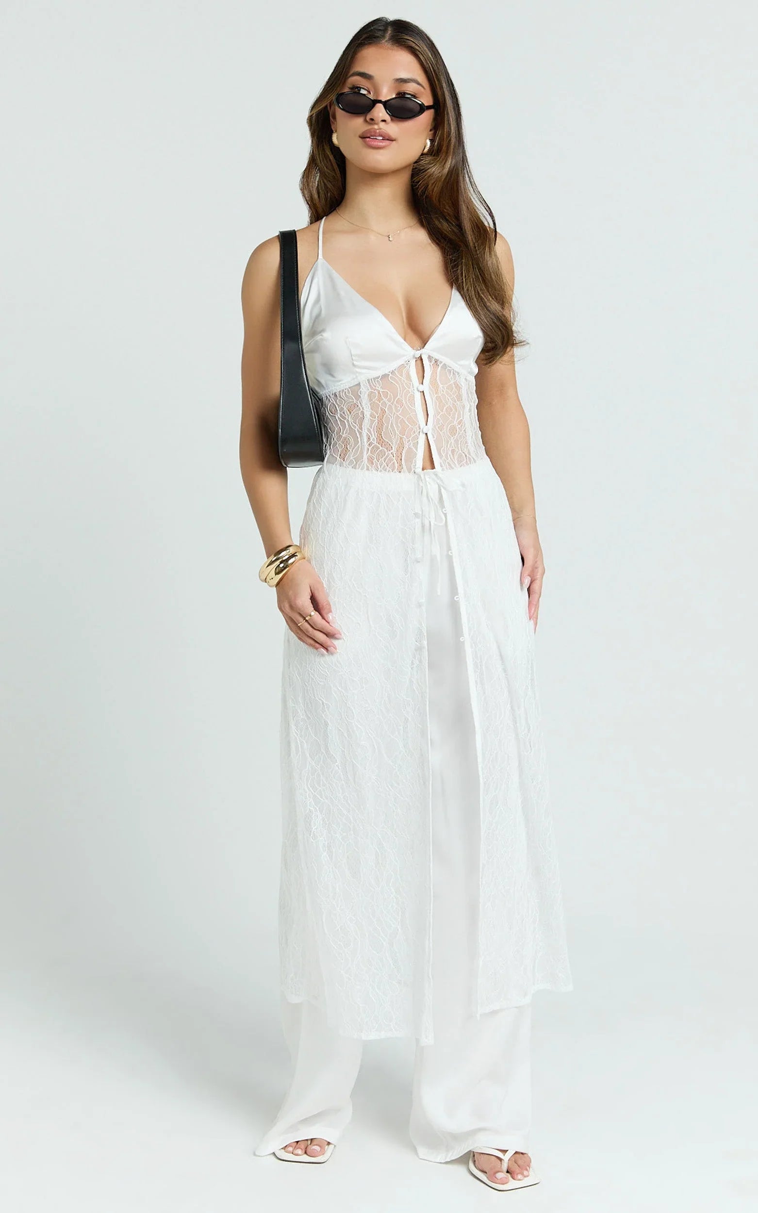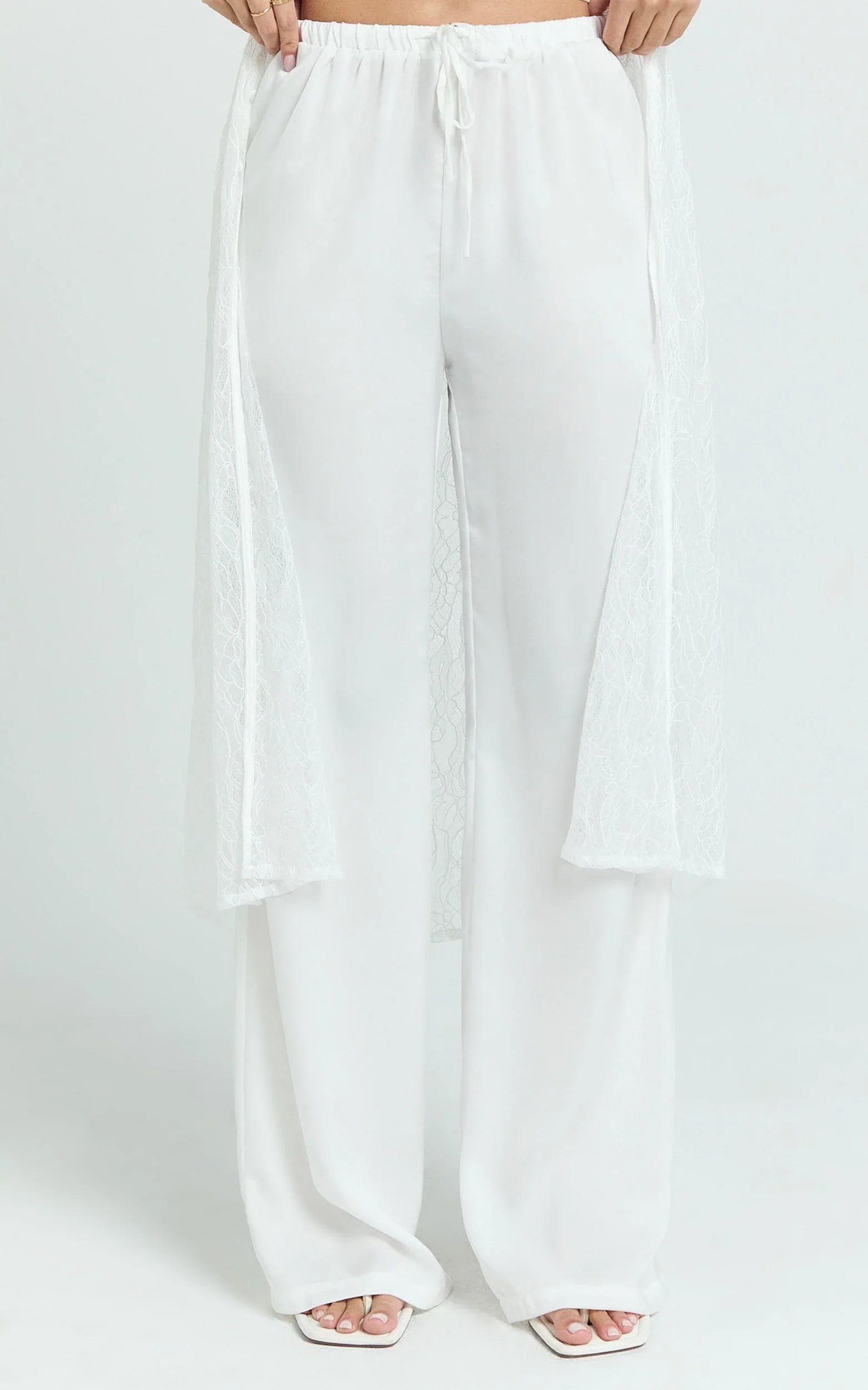 Meet Luna Pants – Satin Elasticated Tie Wide Leg Pants In White: a versatile pair you can dress up or down. Slip on with a fitted crop top and heeled mules for an evening glow-up, or balance the volume with a sleek bodysuit and delicate jewelry. Style with a relaxed blazer for desk-to-dinner polish or keep it simple with a tucked tee for a clean, monochrome moment.