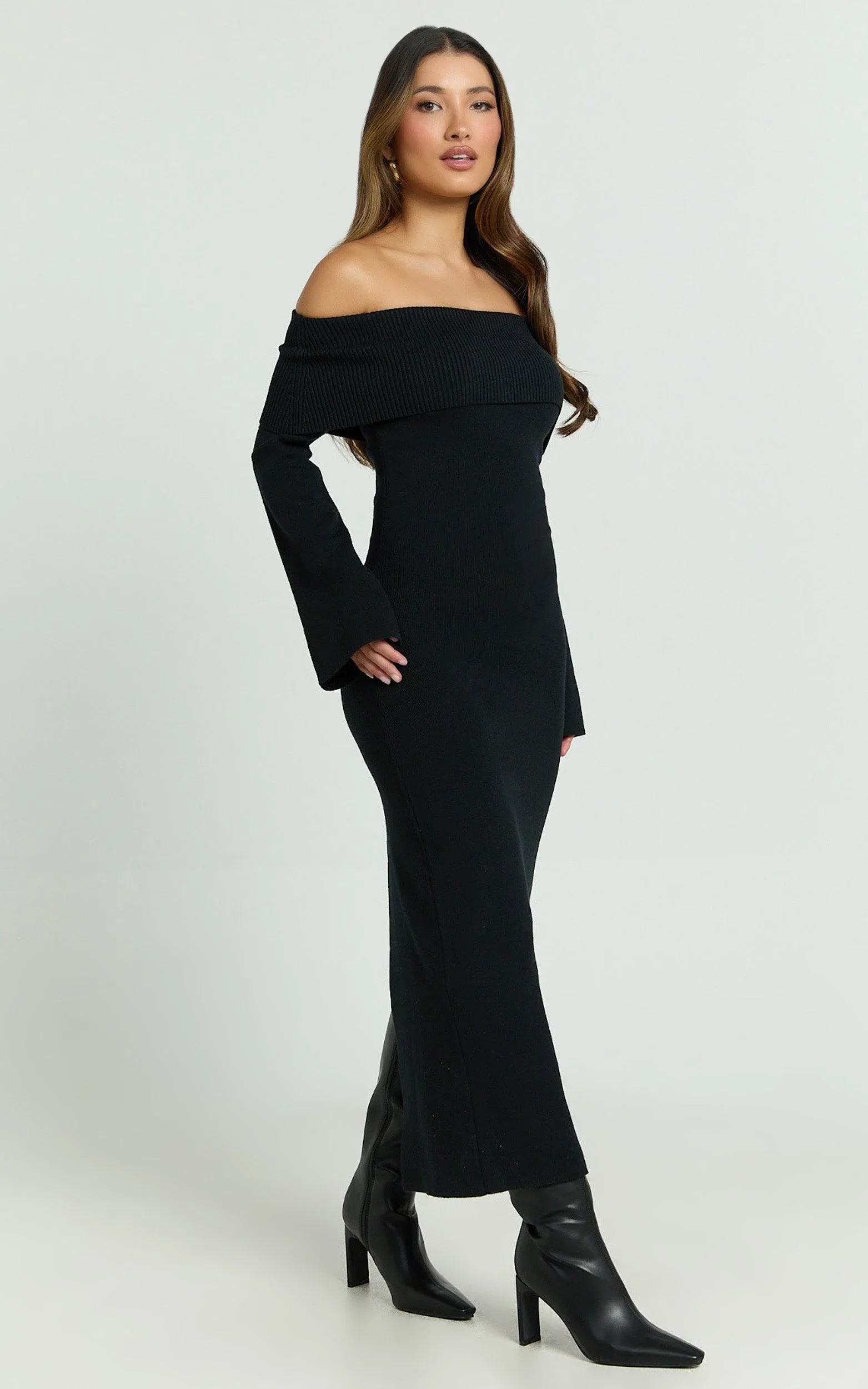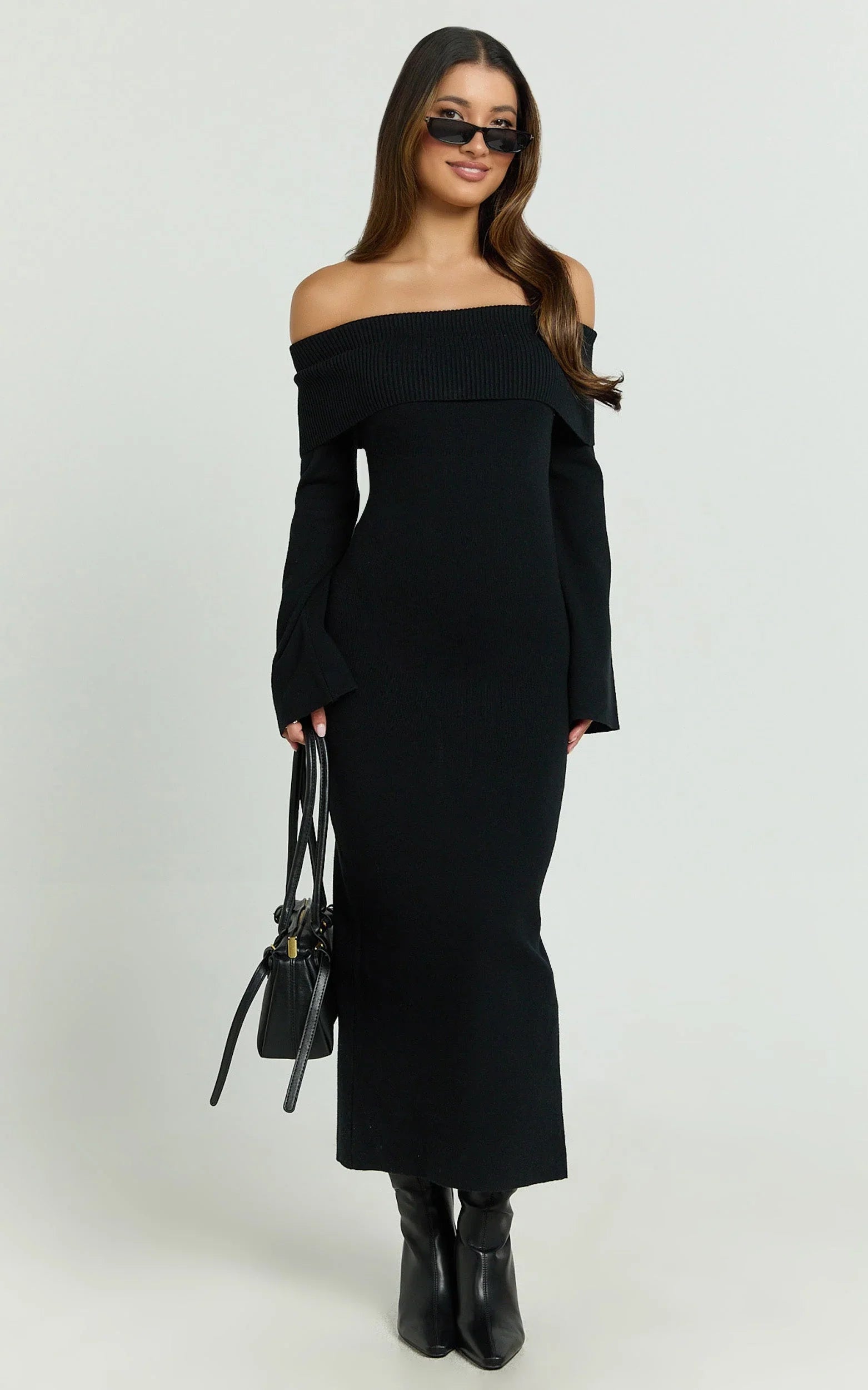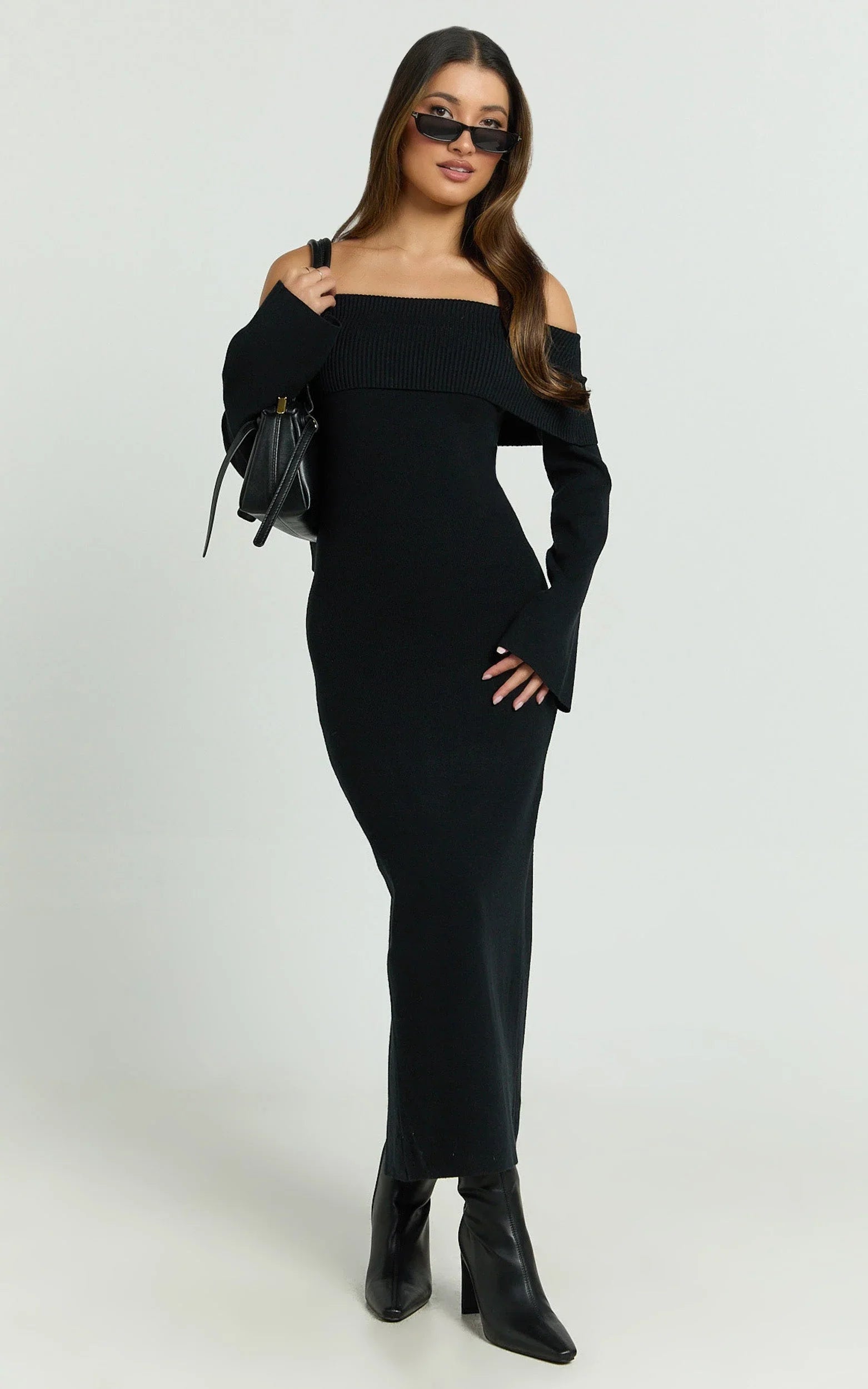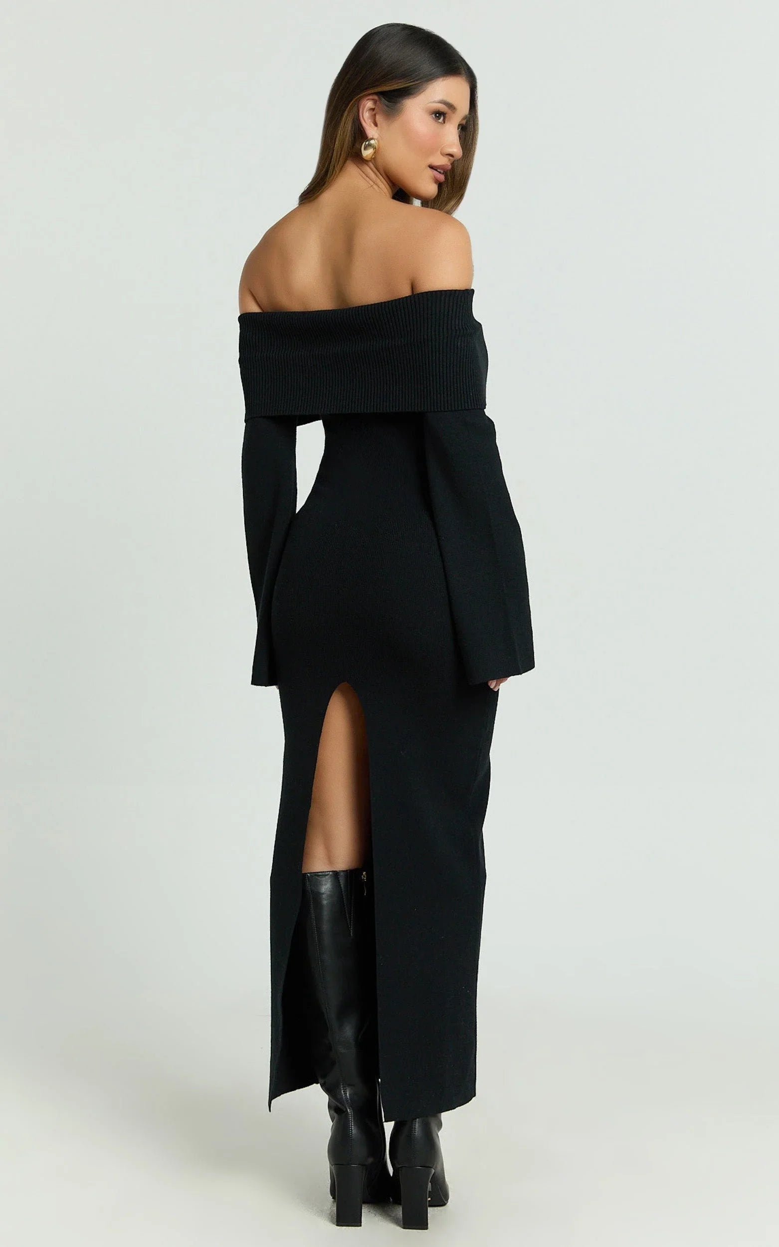 Maisie Midi Dress nails the balance of polish and allure, sitting off the shoulder for a subtle statement while keeping it streamlined through the body. Style it with barely-there heels and a structured clutch for elevated nights out, or add delicate hoop earrings and a slick bun to keep the focus on the curve-skimming shape. Consider it your new favourite in black Dresses, timeless, versatile, and seriously flattering.