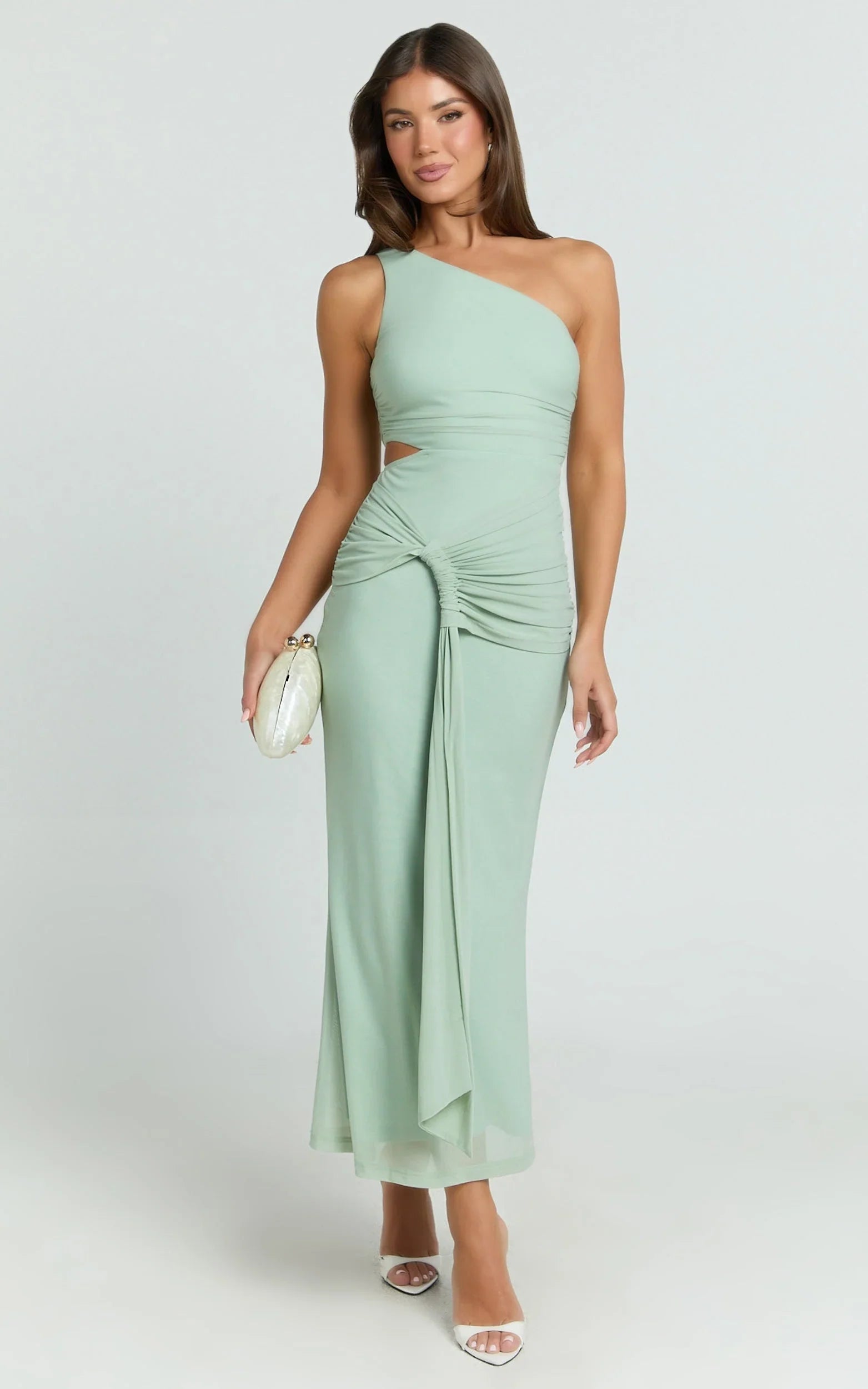 With a flirty knot detail and strategic cut outs, it balances skin and sophistication for a Modern Muse moment, perfect for parties, date nights and dance floors. The curve-loving silhouette and soft green hue make it a statement piece you’ll reach for on repeat.