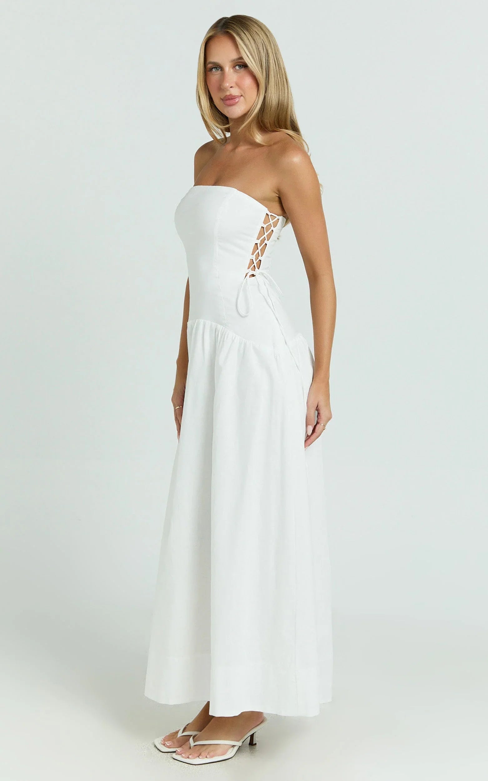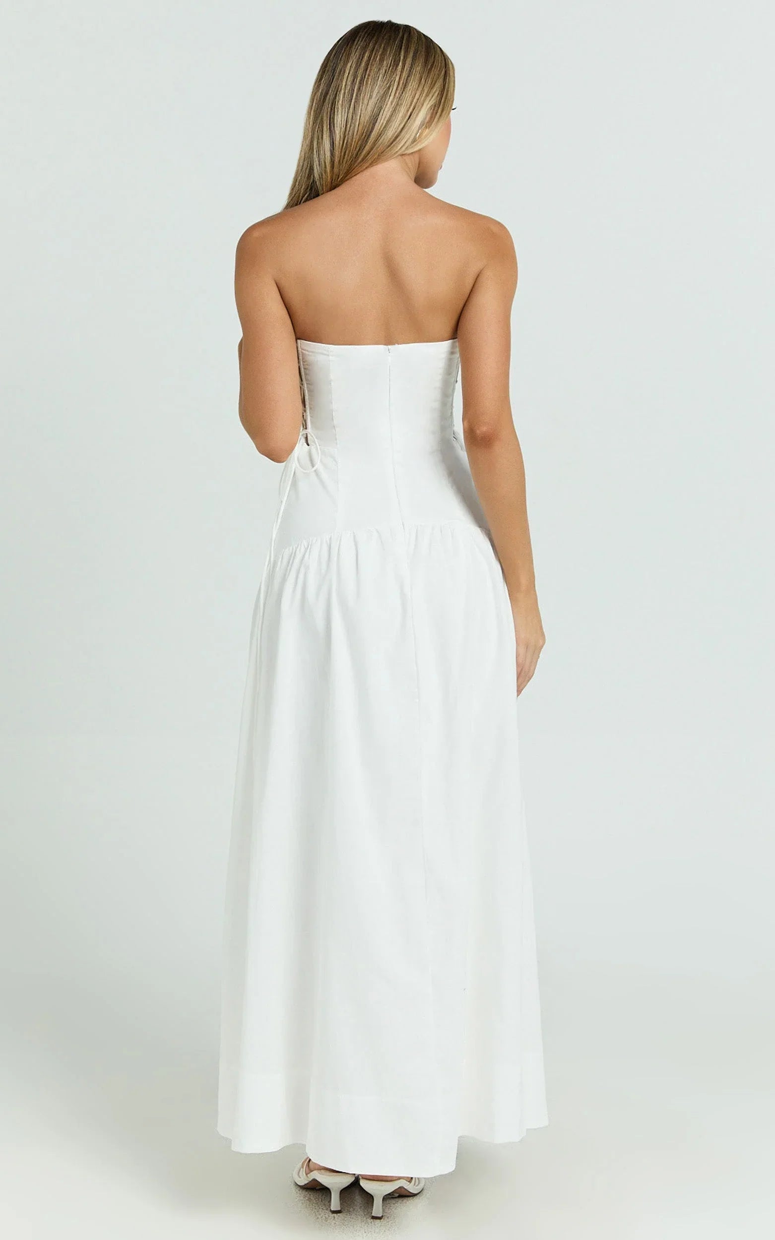 Mikkie Midi Dress brings that polished, vintage-inspired energy without trying too hard, think modern lines with a hint of throwback charm. Perfect for weddings, long lunches, and rooftop moments, it lets your glow lead the way while the strapless neckline spotlights statement earrings. Consider it your go-to in Dresses when you want simple, striking, and so you.