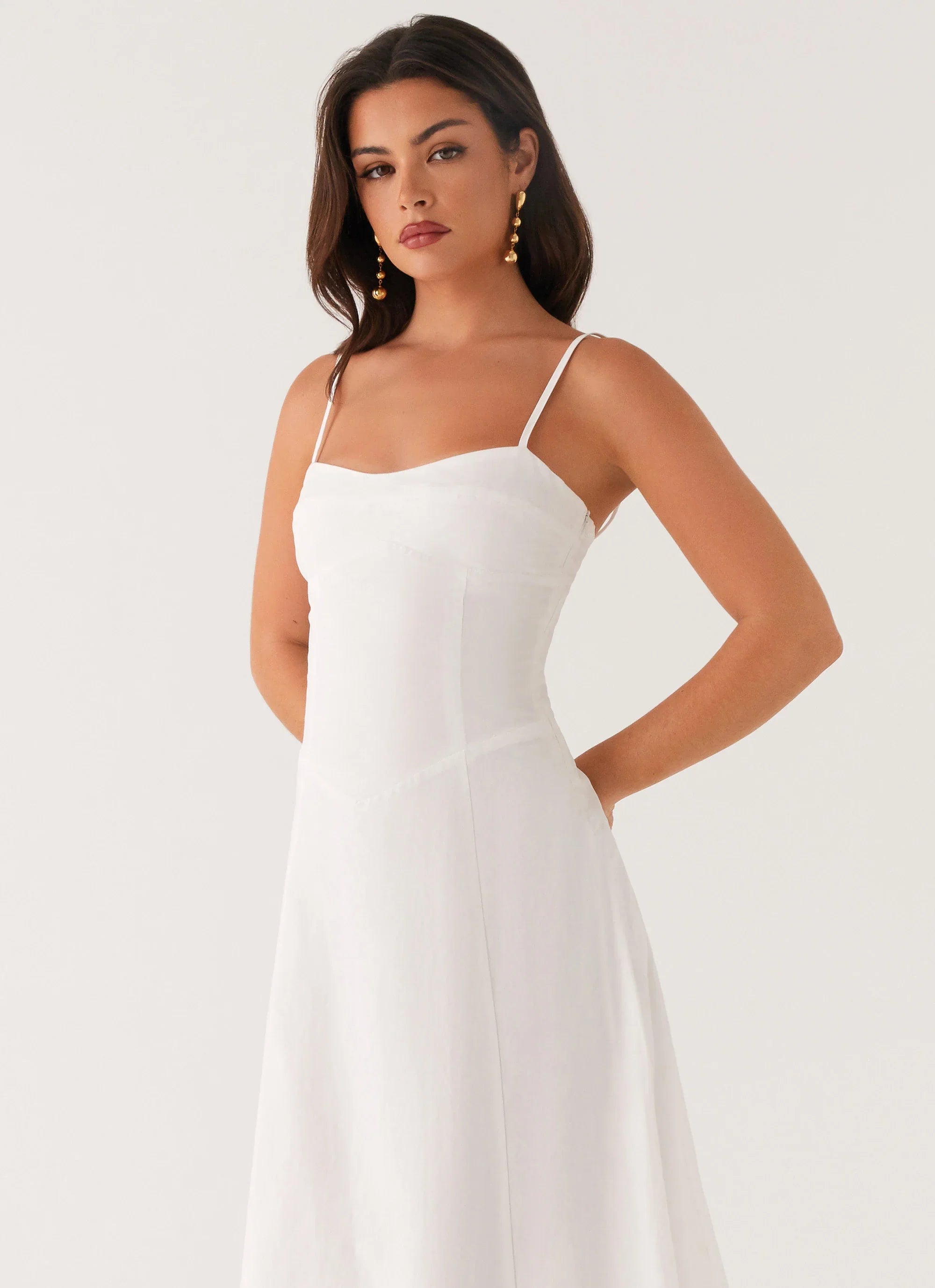 The Noosa Midi Dress is effortlessly feminine. Featuring a sweetheart neckline and thin adjustable straps, it’s designed to flatter your silhouette, perfect for golden skies and balmy nights that linger.