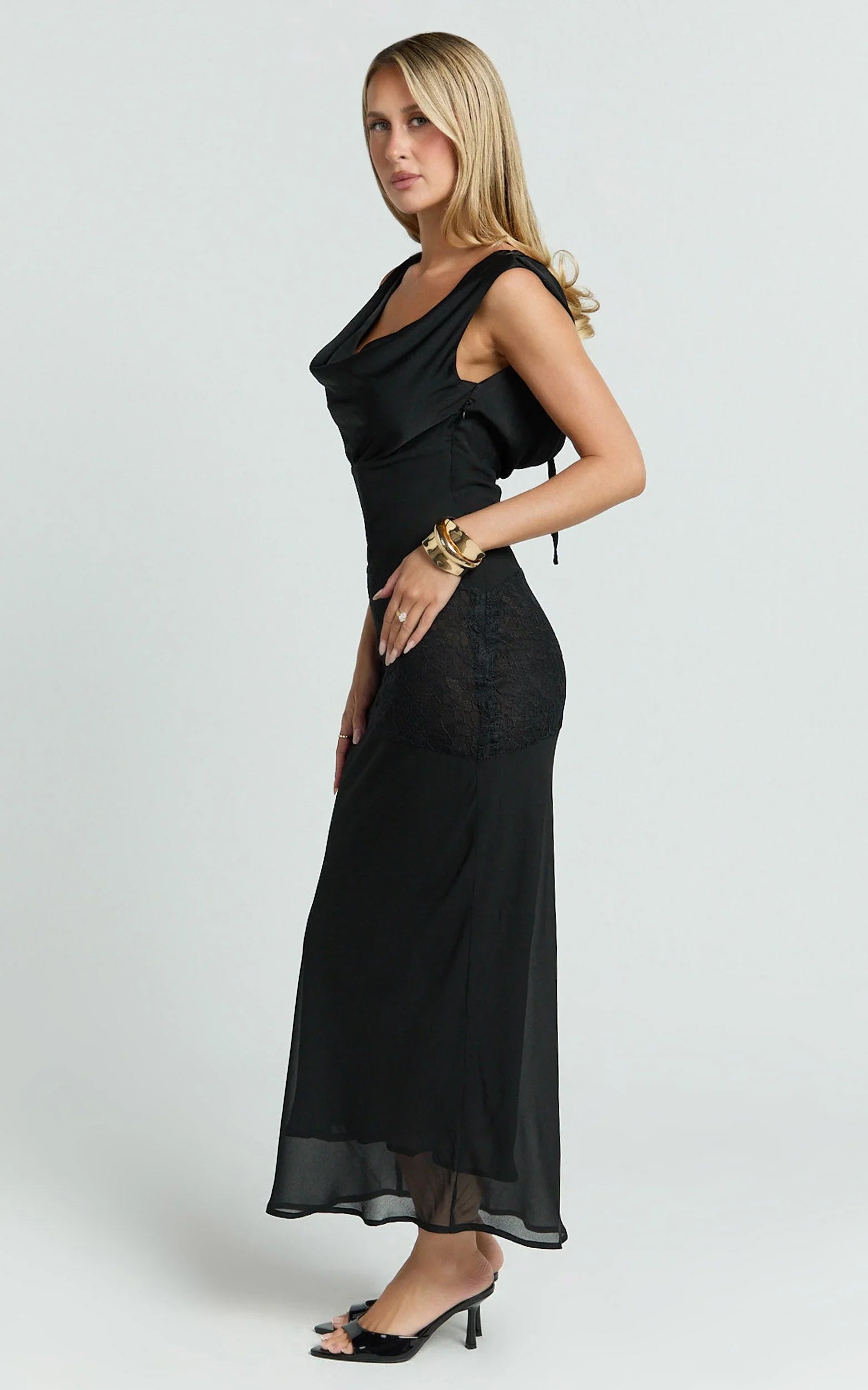 Nova is your go-to when “I have nothing to wear” hits, elevate your Dresses edit with a Black midi that does the most with minimal effort. Style it with strappy heels, a mini top-handle and glossy hoops for a chic finish. Nova Midi Dress - Lace Cowl Neck Tie Back Dress In Black is a certified closet classic you’ll reach for on repeat.