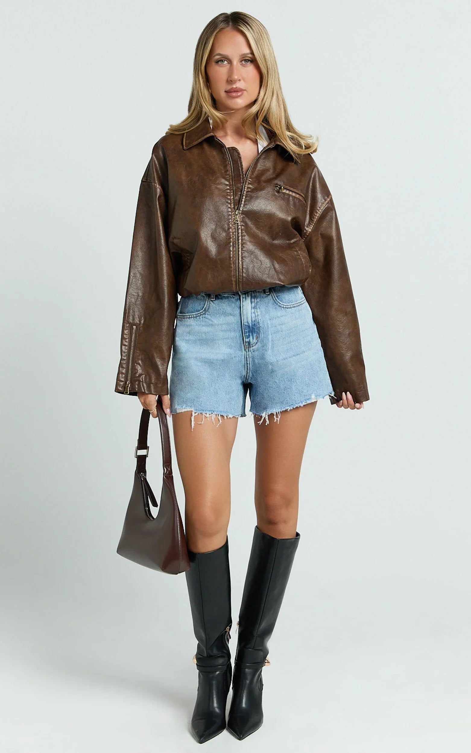 Chic and fresh in a light blue wash, these high-waisted denim shorts feature an edgy frayed hem that's giving major Y2K vibes. Designed to flatter your shape perfectly, they're your go-to piece for sunny days and fun-filled evenings out.
