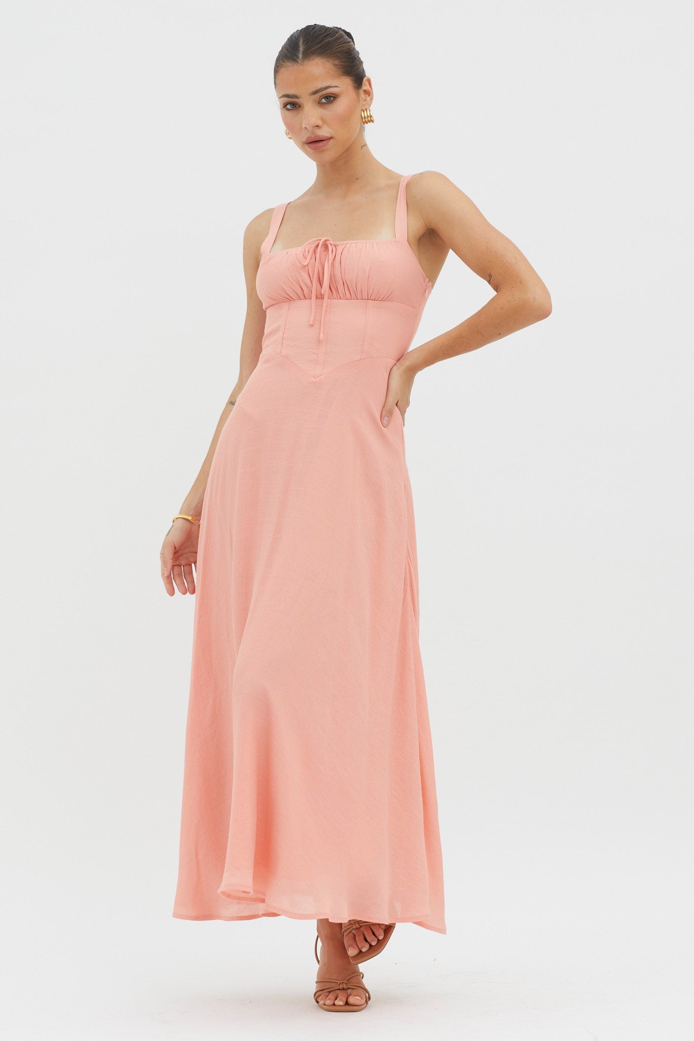 Hello, gorgeous! Sweep them off their feet in our pretty Sweet Pea dress. We are head over heels for its tied bust detail and feminine silhouette. Perfect for Sunday brunch with your girls teamed with tan mules and a tote.
